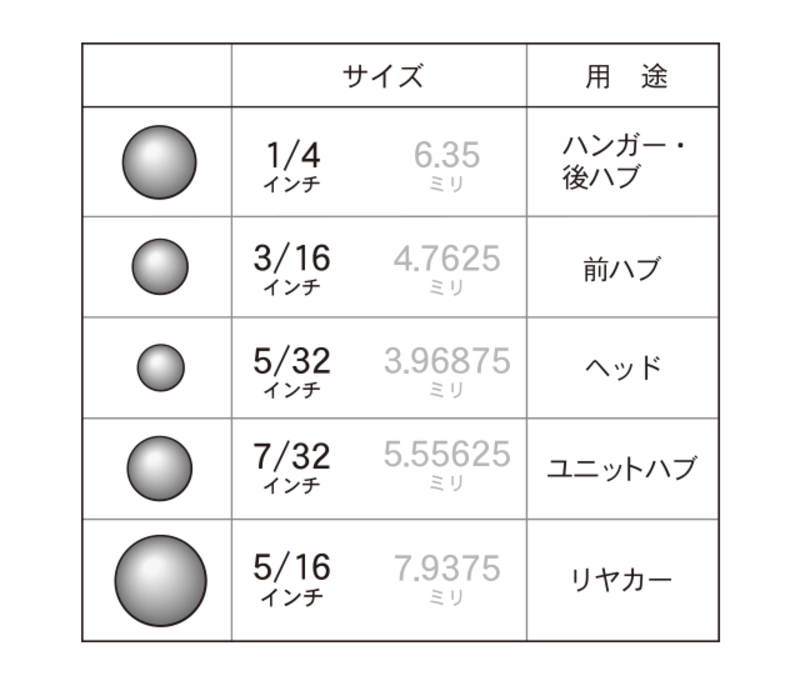 3/16インチ、前ハブ用