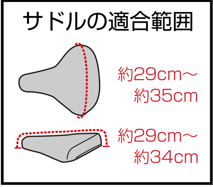 | サイズ | 適合サドル範囲=縦約29cmから約34cm、横幅約29cmから約35cmまで |